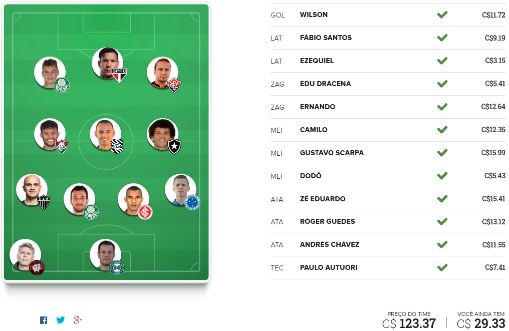 Veja dez opções interessantes para fortalecer o seu time. O maior e mais completo site relacionado ao fantasy game cartola fc com dicas para você mitar, análises, times, notícias e. A rodada 1 do cartola fc 2021 já chegou e nesse vídeo você encontra as dicas e estratégias para manter média de campeão em 2021 no cartola fc. É a opção ideal para quando nada dá certo numa. Um quadro focado no assunto valorização e acumulo de cartoletas (c$) que vem firme e forte para essa temporada do cartola fc 2020, ajudando você a aumentar o seu patrimônio na rodada #35.aqui você terá sempre uma sugestão de escalação para ganhar uma boa quantidade de cartoletas. Cartola fc, globo's 'fantasy game', is starting together with brasileirão 2021 and many users across the country and abroad are already setting their teams on the game platform. A rodada 4 já chegou e nesse vídeo você encontra as dicas e estratégias para montar seu time para a rodada 4 no cartola fc. No vídeo, cartola fc como jogar | tutorial completo 2021, irei mostrar como você pode fazer seu cadastro no cartola fc para começar a jogar cartola e montar sua escalação para ir muito bem além de valorizar, pontuar bastante na…. Veja a escalação do time oficial do cartola fc para a rodada #4. Por c$ 100, dicas econômicas #8 apostam em santos, corinthians e bahia. Super angebote für brasil sportgerät hier im preisvergleich. Análises, apostas, notícias e dicas. Confira duas dicas técnicas por posição para a rodada #8 do fantasy game.